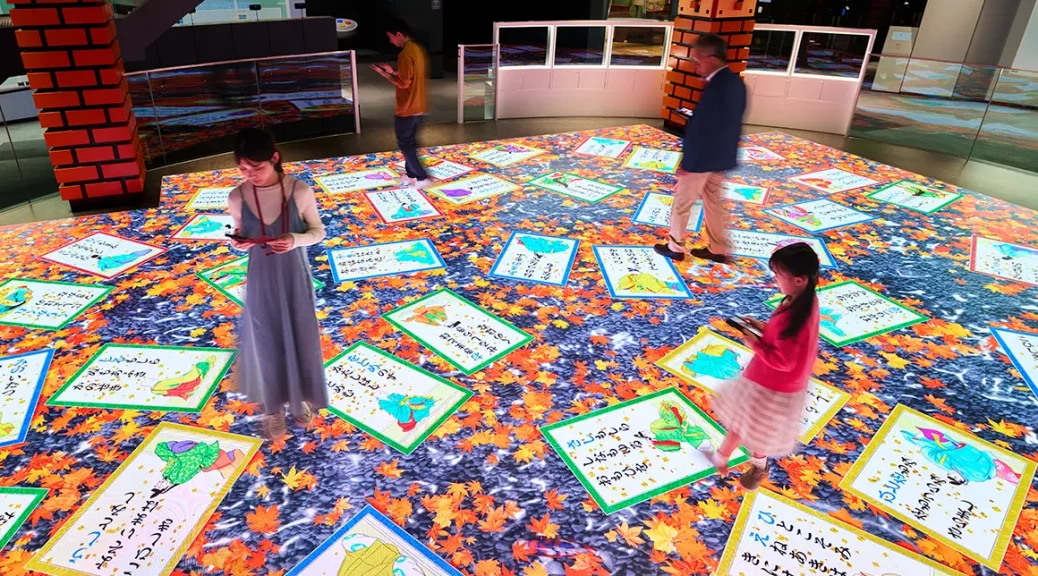El suelo de la planta baja lo ocupa una pantalla gigante donde se puede jugar a Hyakunin Isshu, un tradicional juego de cartas japones, a través de una pantalla gigante que cubre el suelo y un dispositivo inteligente. Esta planta es el epicentro de las experiencias interactivas, ofreciendo al público un total de 8 actividades diferentes.