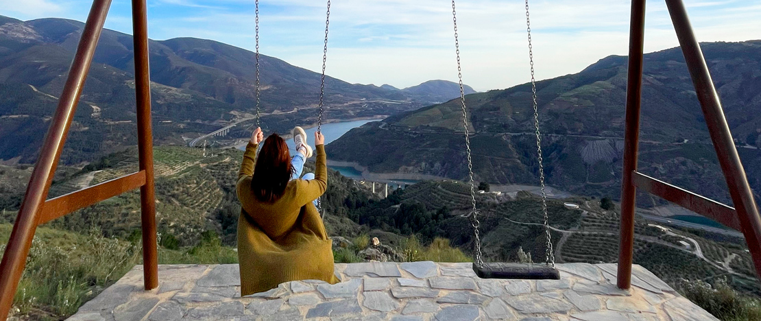 En el Sendero de los Pescadores (era el trayecto que ellos hacían antiguamente desde la costa) hay un columpio con una panorámica espectacular. Desde allí tienes vistas preciosas del pantano de la Presa de Rules y del Pico del Caballo.